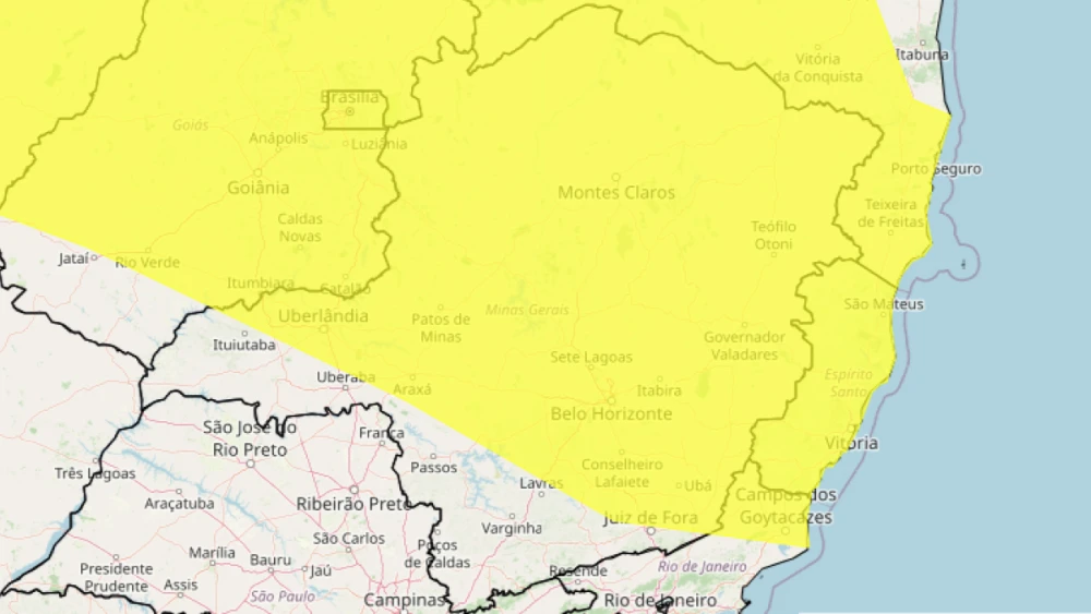 O alerta amarelo do Inmet abrange regiões como Metropolitana de Belo Horizonte, Norte de Minas, Vale do Rio Doce, Zona da Mata, Triângulo Mineiro, Jequitinhonha, Noroeste, Oeste e Campo das Vertentes.