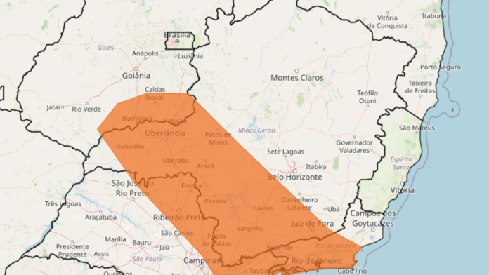 De acordo com o Inmet, 352 municípios mineiros estão sob alerta para chuvas intensas, com possibilidade de volumes elevados em curto período de tempo, além de ventos que podem ultrapassar 60 km/h em áreas isoladas. Há risco de alagamentos, quedas de árvores, enxurradas e transtornos no trânsito urbano.