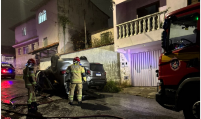 Quando a equipe de resgate chegou, o veículo já estava totalmente tomado pelas chamas. Os bombeiros agiram rapidamente para conter o incêndio, evitando que o fogo se alastrasse para residências e outros carros próximos.