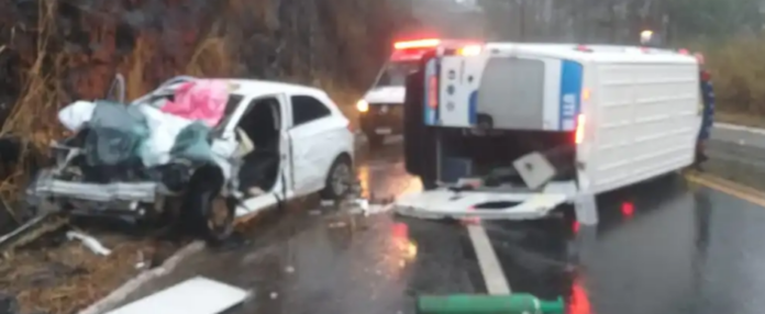Uma enfermeira, identificada como Camila Freitas, morreu em um grave acidente envolvendo uma ambulância e um automóvel na BR-262, na Zona da Mata de Minas Gerais, no final da tarde desta quinta-feira (10). O acidente ocorreu no km 48, entre os municípios de Manhuaçu e Realeza, em um trecho que estava sob forte chuva.