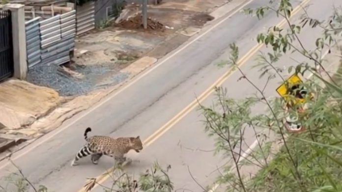 Na tarde desta segunda-feira (03/11/25), um morador avistou o que descreveu como uma “casa de onças-pintadas” às margens da rodovia que liga o centro de Nova Lima ao bairro Nossa Senhora de Fátima, na região sudeste da cidade, próxima ao limite com Belo Horizonte e rodeada por áreas de mata nativa.