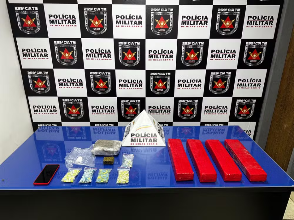 Segundo a PM, o coletivo foi abordado e os policiais desconfiaram da passageira, que mantinha uma mochila posicionada embaixo das pernas. Durante a revista, foram encontrados: