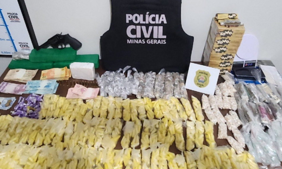 Na última quinta-feira (27/3), uma operação da Polícia Civil de Minas Gerais (PCMG) resultou na apreensão de uma grande quantidade de entorpecentes e na prisão de um homem de 23 anos, em Nova Serrana, no Centro-Oeste de Minas. Durante a ação, os policiais apreenderam 1.040 pinos de cocaína, 280 buchas de maconha, 310 unidades de ecstasy, 1.260 pedras de crack, 41 tabletes de maconha e uma balança de precisão.