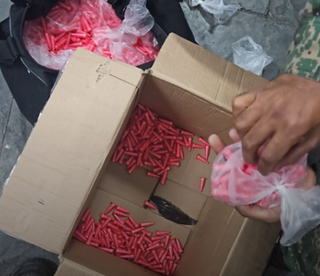 Durante a abordagem, os militares localizaram 12 barras de maconha, uma barra de cocaína, cerca de 2 mil pinos de cocaína prontos para comercialização, 130 unidades da droga sintética conhecida como MDMA (ou “MD”), além de uma balança de precisão, geralmente utilizada para fracionar entorpecentes antes da venda.