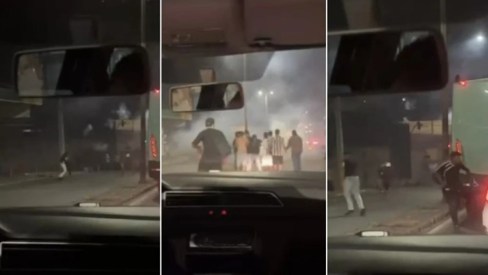 Segundo a PM, cerca de 100 membros da Máfia Azul, armados com bastões, pedras e fogos de artifício, atacaram um grupo de 70 torcedores da Galoucura que era escoltado por militares.
