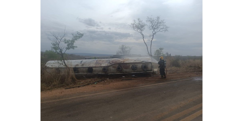 Um caminhão-tanque carregado com 35 mil litros de combustíveis (30 mil de diesel e 5 mil de gasolina) tombou na noite de terça-feira (23/09), por volta das 19h20, no km 40 da MGC-451, na zona rural de Olhos D’Água, no Norte de Minas. O acidente ocorreu enquanto o veículo realizava uma curva, provocando a separação entre o cavalo mecânico e o semirreboque.
