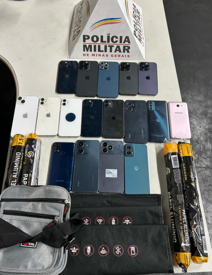 Segundo a PMMG, os celulares furtados estavam enrolados em papel alumínio, técnica utilizada para dificultar o rastreamento dos dispositivos. Além disso, os agentes encontraram bolsas bloqueadoras de sinal telefônico, um indício de que a quadrilha possuía um esquema organizado para evitar a localização dos aparelhos.