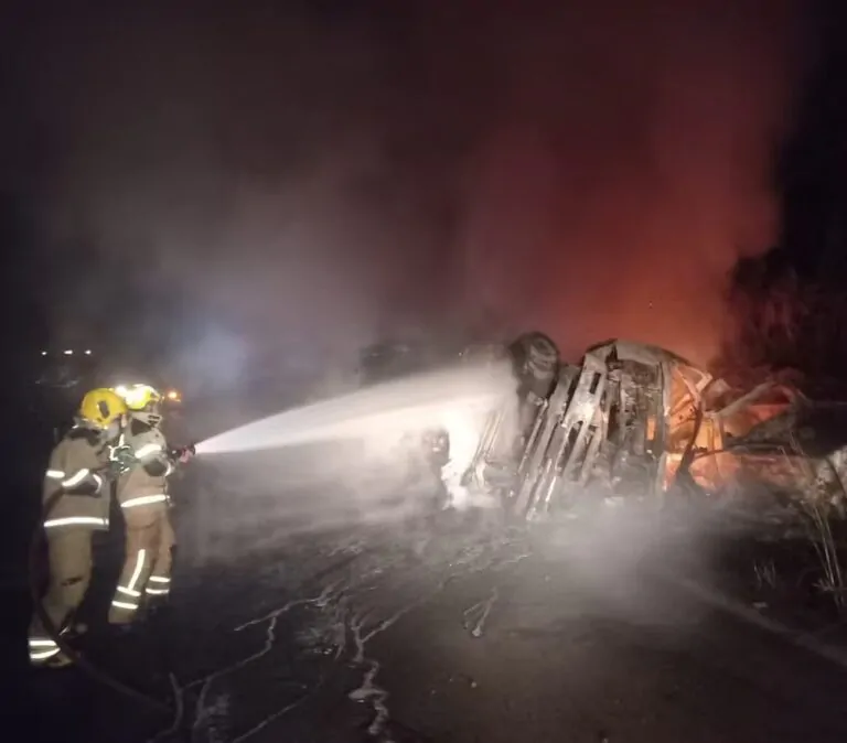 Segundo o Corpo de Bombeiros, o acidente ocorreu quando uma carreta e uma caminhonete colidiram de frente em uma curva no trecho conhecido como Serra do Israel. Com o impacto, ambos os veículos tombaram e pegaram fogo às margens da pista.