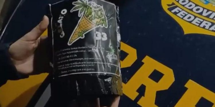 Durante a fiscalização do veículo, os agentes descobriram que a droga estava escondida em uma mala e em uma sacola no assoalho do carro. Foram encontrados 20 pacotes de skunk comum, quatro pacotes da variedade “skunk gourmet sabor gelato” e também um tablete menor de haxixe.