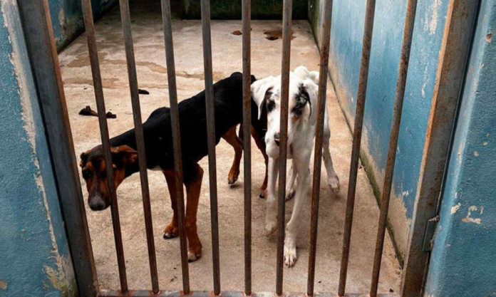 O médico veterinário responsável pelo canil público de Campos Altos, no Alto Paranaíba, e um vigilante ambiental do município foram presos após a Polícia Militar de Meio Ambiente encontrar dois animais mortos e três cadelas em estado de extrema magreza.